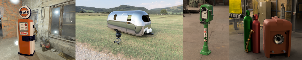 Plain and Branded (Gulf, Mobil, Sinclair) gas pump globes