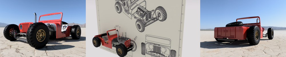 FOUNDING MEMBER EXCLUSIVE - Our "Creep" rat rod is the baddest, lowest Jeep you'll ever see. This full kit contains all the files needed to print this beast of a CJ-5, minus the engine. In true hot rod form, you can squeeze nearly any motor in this bad boy. PLEASE NOTE: This file pack was an exclusive release for Founding Members, and is not available for purchase by new members of Scale Speed Garage.