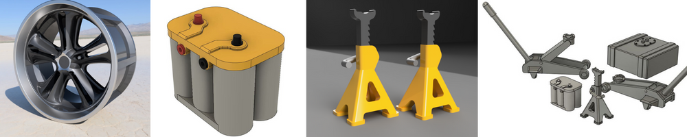 Floor jacks and jack stands add realism to any shop diorama and also make for a unique way to display builds. Aftermarket batteries and fuel cells add detail to any race car. Foose Knuckle wheels in 10 sizes add modern punch to any build and Toyo Proxes 888R tires plant that build to the road.