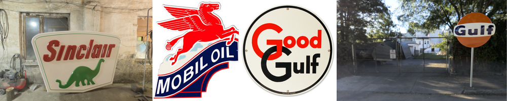 Plain and Branded (Gulf, Mobil, Sinclair) gas pump globes and signs